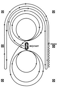 círculo. Corra pelo lado esquerdo da arena passando pelo marcador